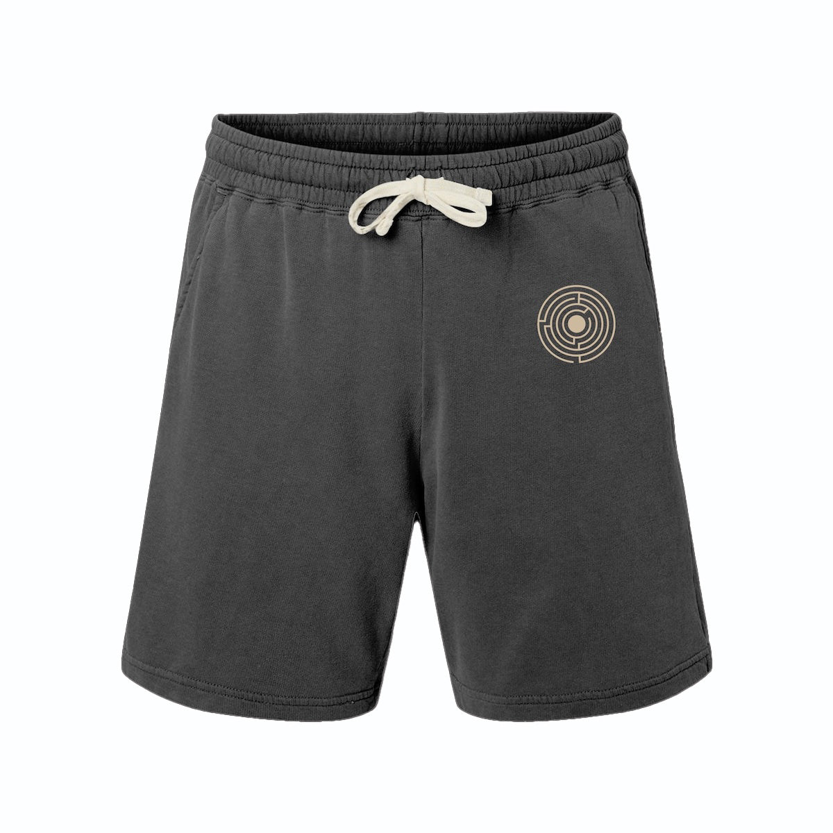 With a relaxed fit and structured side seams, these shorts are designed for easy movement—whether you're lounging, strolling, or staying active. The jersey-lined side pockets provide convenient storage for your essentials, while the minimalist labyrinth emblem serves as a subtle reminder of inner balance and exploration.
